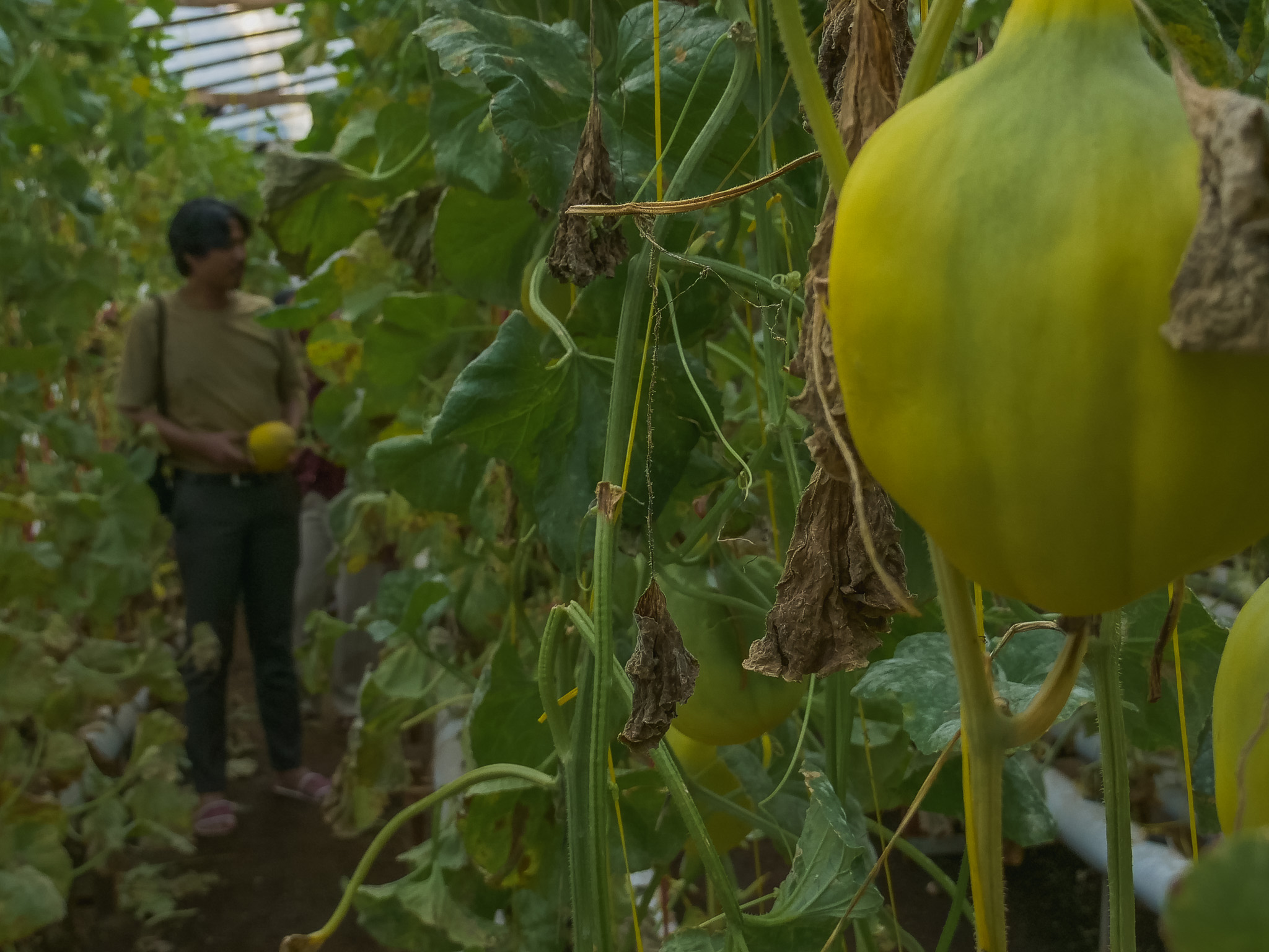 Dia mengatakan dalam satu greenhouse ada 600 lubang tanam. Dia menghitung-hitung kalau satu lubang satu kilo maka ada 600 kilogram yang akan didapatkan.